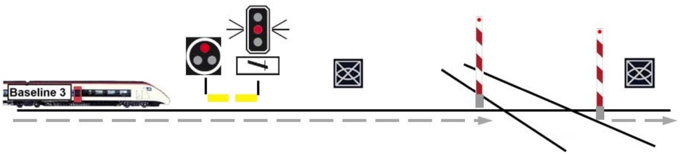 Lorsqu’un PN est surveillé par un signal de protection, le block de ligne fonctionne normalement. Sur le plan opérationnel, le convoi pourrait être accéléré suite au franchissement du PN. Le mode d’exploitation «SR» étant activé, la vitesse reste toutefois limitée jusqu’au passage en mode «LS».