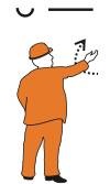 Lever le bras tendu une fois à la hauteur de l’épaule, perpendiculairement à la voie; pour l’indication deux mètres, lever deux fois le bras tendu.