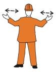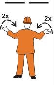 Renseigner verbalement le mécanicien de loco- motive, lever les deux bras en avant à la hauteur des épaules, puis rapprocher et écarter à plusieurs reprises les mains ouvertes paume contre paume.