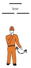 Donner un, respectivement deux longs coups de sifflet et agiter lentement le bras dirigé vers le bas, dans le sens de marche.